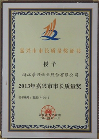 | 2014. | 02. | 景興紙業(yè)榮獲“2013年度嘉興市市長質(zhì)量獎”。 |
