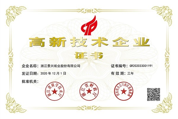 | 2011. | 09. | 景興紙業(yè)首次獲得國家“高新技術(shù)企業(yè)”證書。 |