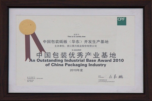 | 09. | 景興紙業(yè)申報(bào)國家級包裝紙板開發(fā)生產(chǎn)基地順利通過認(rèn)證,且于2003年1月起正式成為國家級包裝紙板開發(fā)生產(chǎn)基地。 | |